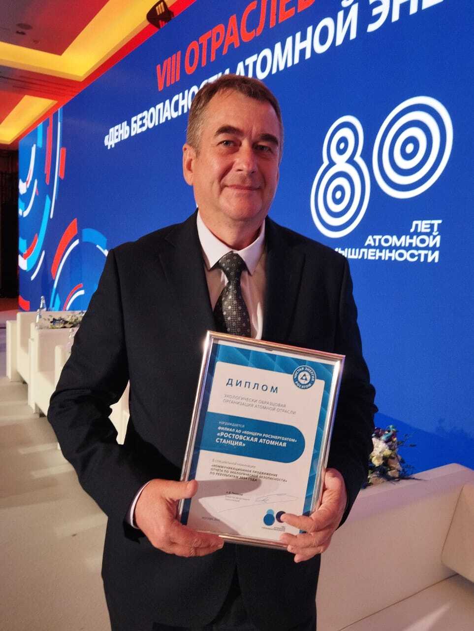 Диплом в спецноминации Департамента коммуникаций Госкорпорации «Росатом» Ростовской АЭС вручали на церемонии награждения в рамках VIII форума-диалога «День безопасности атомной энергетики и промышленности».