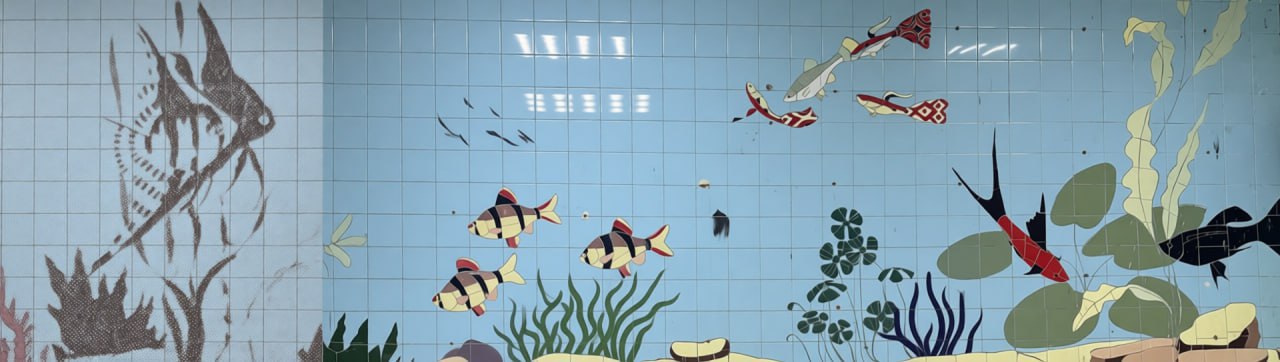 Об этом сообщил тг-канал «Прогульщик». Недавно мозаичное панно в виде подводного мира было обнаружено в бывшем ростовском зоомагазине в центре города. При разборе павильона на стенах появился (смотрите фото) вот такой сюжет. Причем неплохо все сохранилось. Так вот, по данным тг-канала, сейчас ведутся переговоры о ее реставрации.