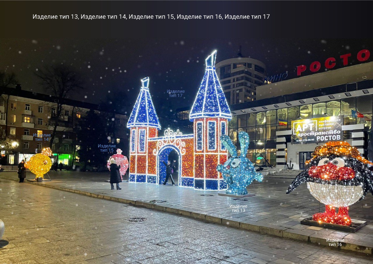 Ростов к Новому году второй раз подряд украсят прошлогодним декором. Согласно информации на сайте госзакупок, его установка обойдётся городу в 15,1 млн рублей.