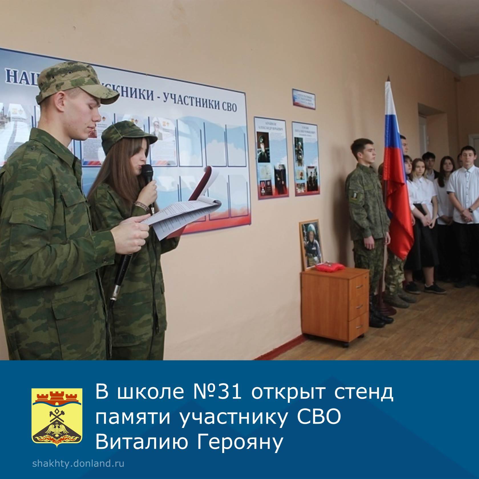 В школе №31 состоялись торжественная церемония открытия памятного стенда участнику СВО Виталию Герояну и презентация книги о нем.