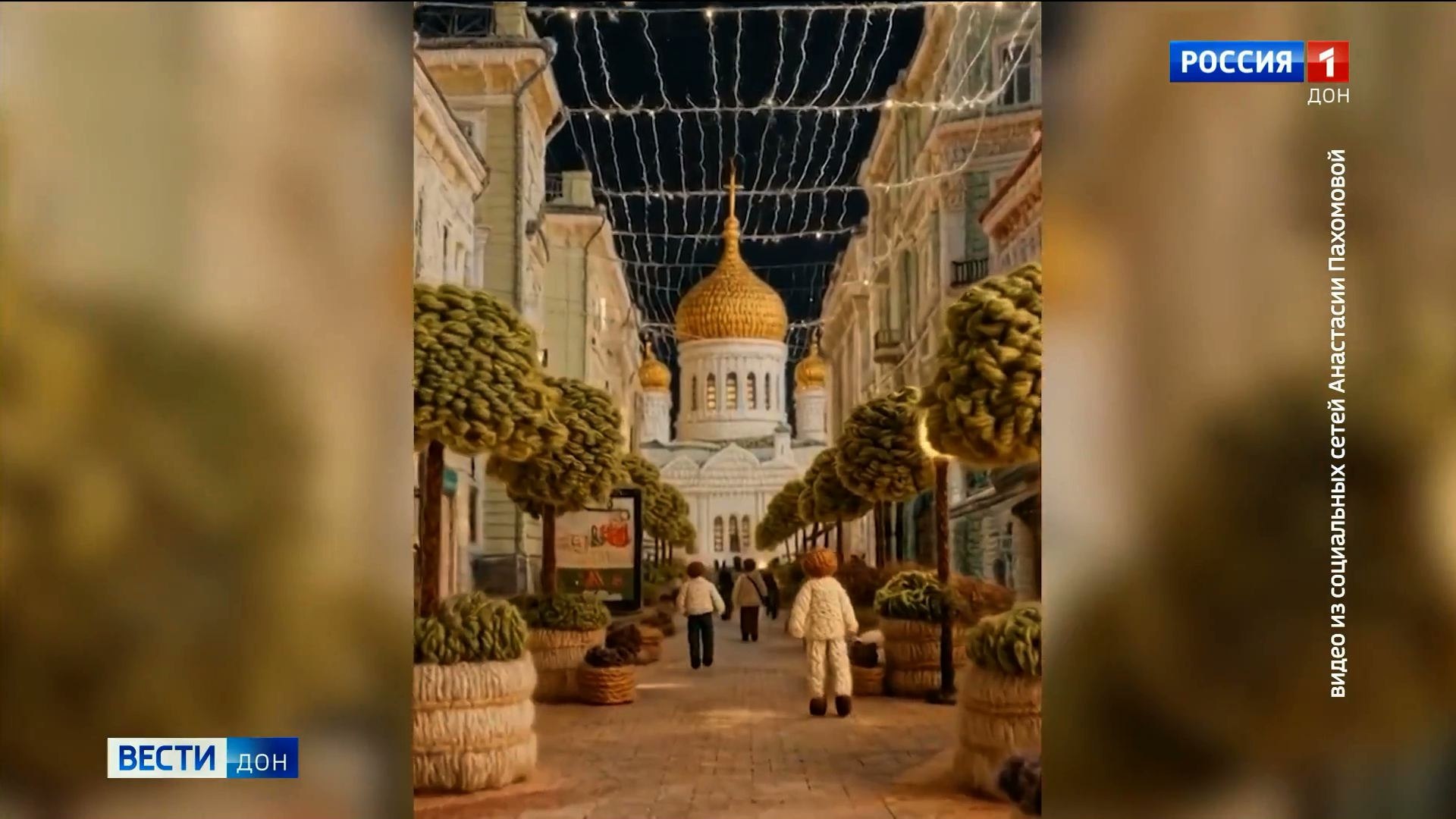 Тёплый и уютный Ростов, связанный из шерстяных ниток, придумала и создала при помощи нейросети дизайнер Анастасия Пахомова. В ролике можно узнать ажурную улицу Большую Садовую, кружевной Соборный.