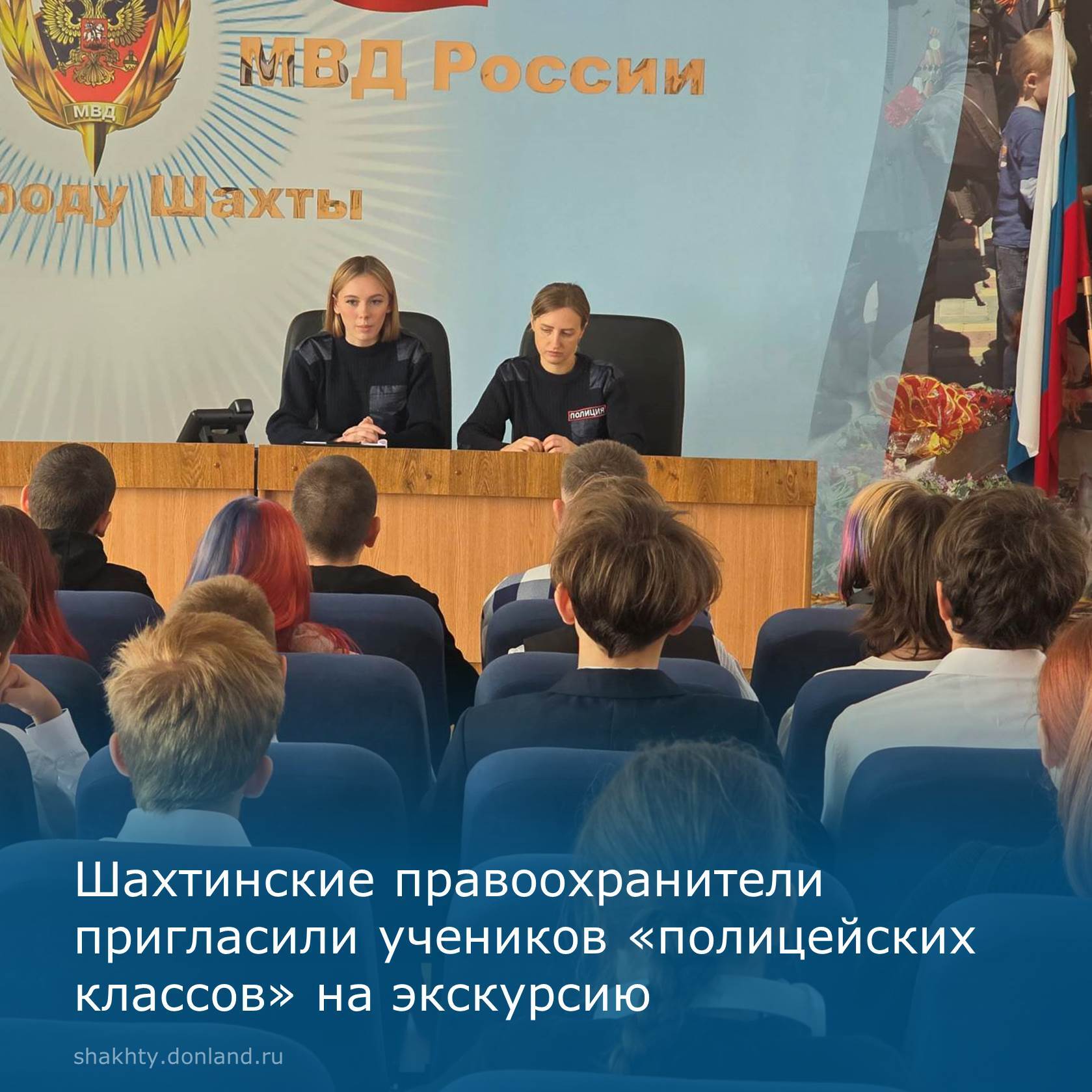 Ученики полицейских классов школы № 40 города Шахты посетили городское Управление МВД России. Детей встретили сотрудники отдела по работе с личным составом, отделения по делам несовершеннолетних и отдела по контролю за оборотом наркотиков.
