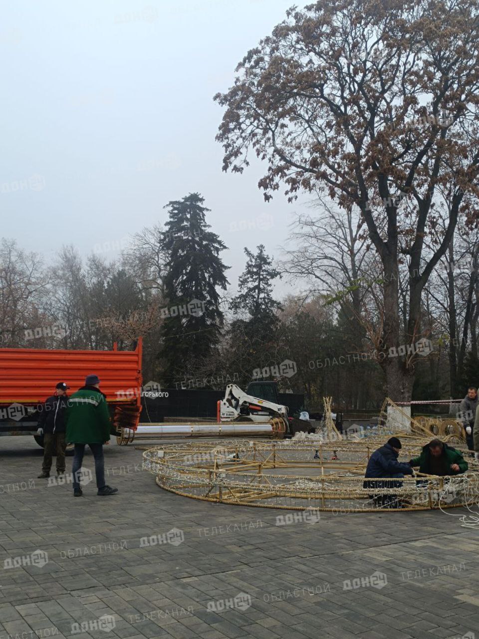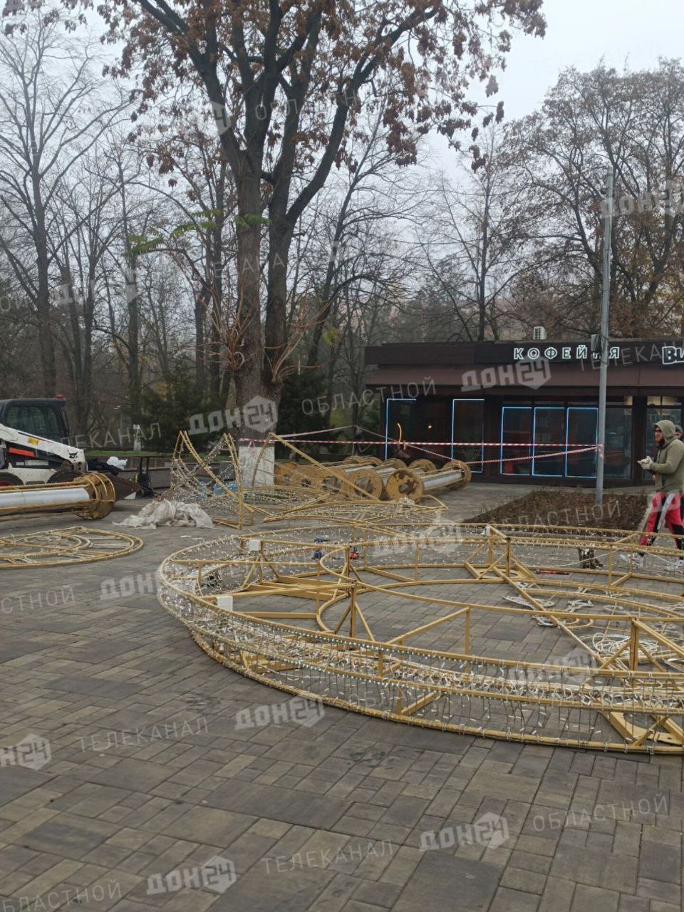 В парке Горького уже начали монтировать праздничные украшения. Это запечатлели корреспонденты «ДОН 24».