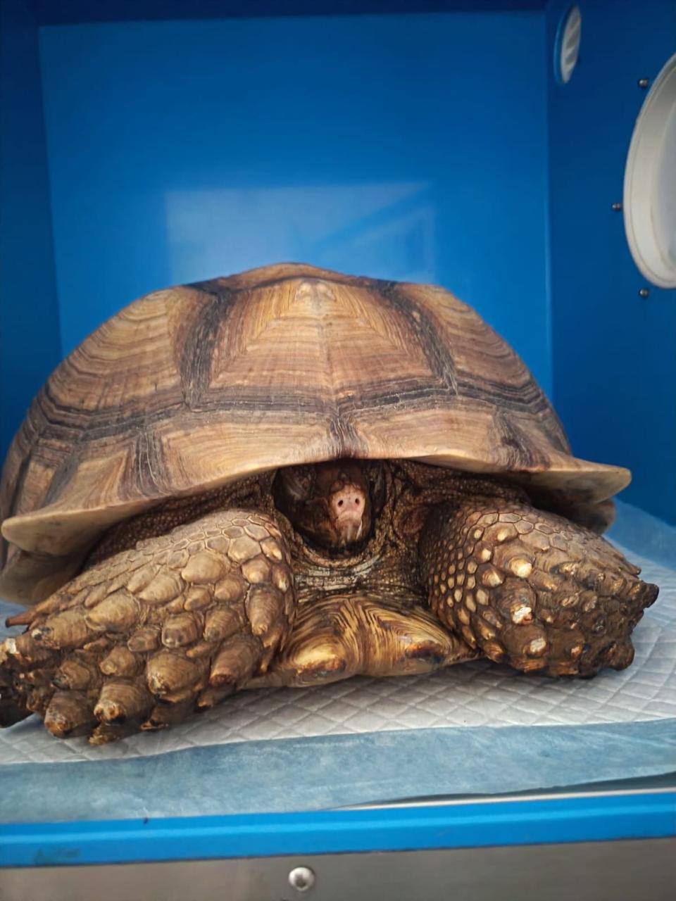 Черепаху доставили в ветеринарный блок, где врачи провели первичную помощь, обработали ожоги, обеспечили оксигенацию и начали интенсивную инфузионную терапию. Рентген показал серьёзные повреждения лёгких.