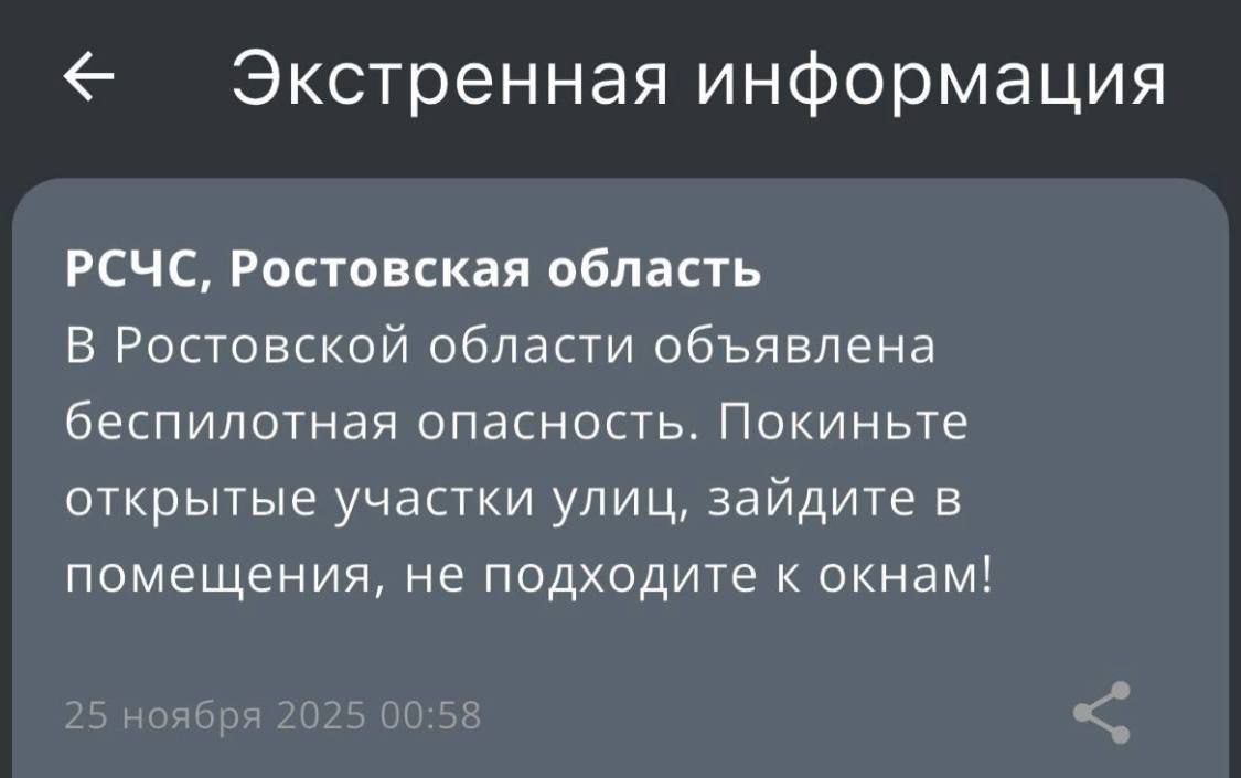 - В Ростовской области объявлена угроза атаки неактивных БПЛА, сообщают местные ТГ-каналы// Украина.ру