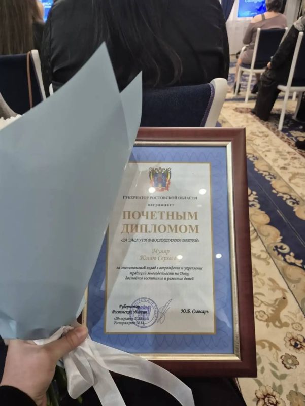 Многодетная мама из Батайска Юлия Сергеевна Муляр получила Почётный диплом Губернатора Ростовской области Юрия Слюсаря – «За заслуги в воспитании детей».