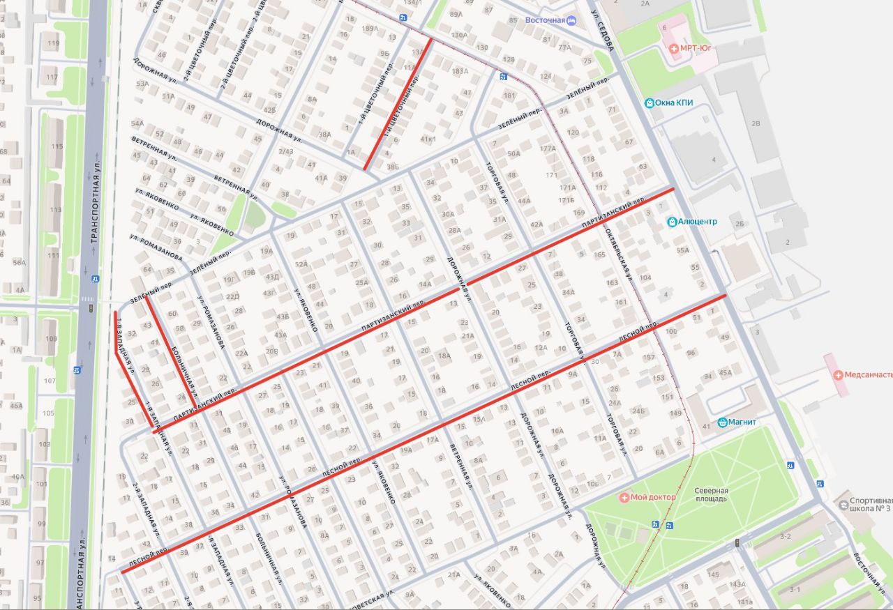 Пер. Партизанский (участки от ул. Восточная до ул. Дорожная и далее до ул. 1-я Западная)