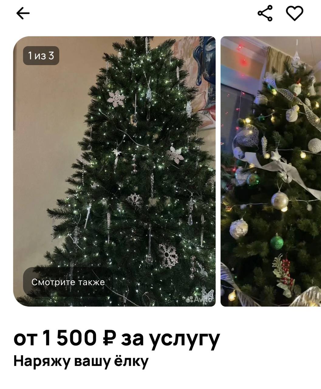 Одни исполнители предлагают креативный подход к декору. Например, приехать и нарядить елку игрушками заказчика или самостоятельно подобрать украшения в магазинах. Стоимость услуги начинается от 1500 рублей и зависит от сложности заказа, а выезд по магазинам оплачивается отдельно.