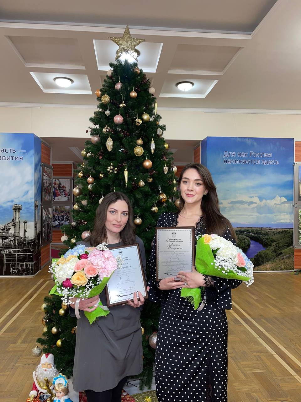Корреспонденты "Первого Ростовского" Марина Черных и Алина Цыганкова награждены Юрием Слюсарем за победу в конкурсе "Безопасный Дон".