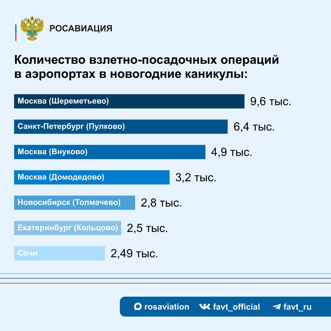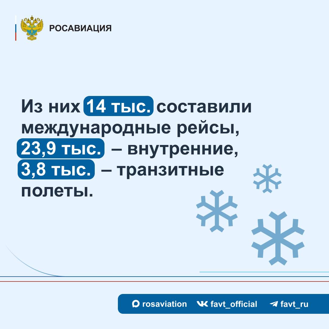 С 29 декабря по 11 января в воздушном пространстве России зарегистрировано более 41 тыс. полетов.