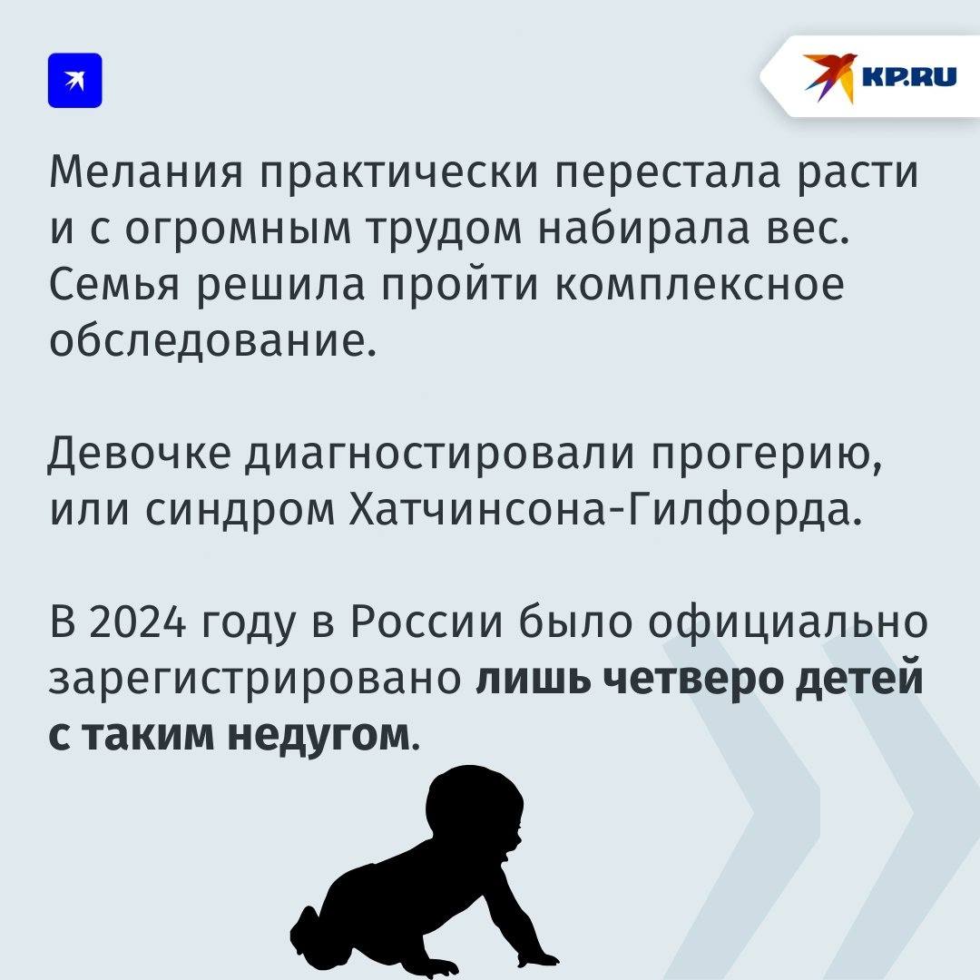 Врач распознала у грудничка редчайшее заболевание – склерему новорожденных. Родители бросили все ресурсы, чтобы спасти младшенькую дочку. Мелания прошла комплексную терапию, включающую гормональные препараты.