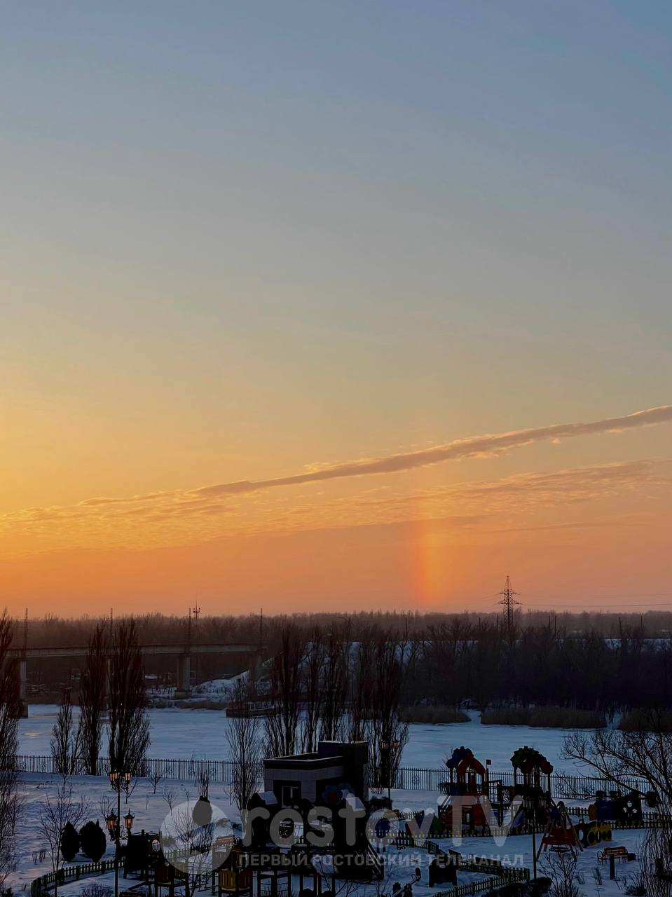 Сегодня над донской столицей зависла «вертикальная радуга», или световой столб.