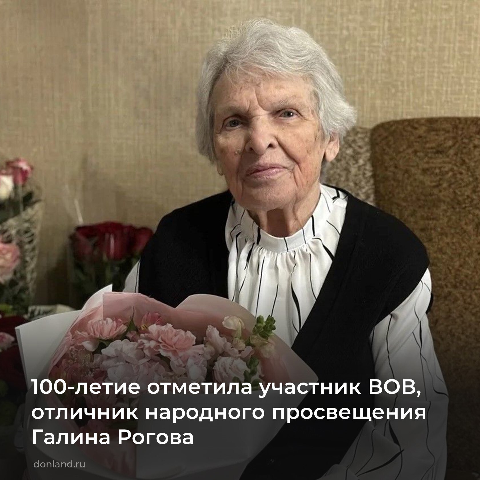 100-летний юбилей отметила Галина Витальевна Рогова – участник ВОВ, педагог, отличник народного просвещения, ветеран труда, почетный гражданин города Новочеркасска.