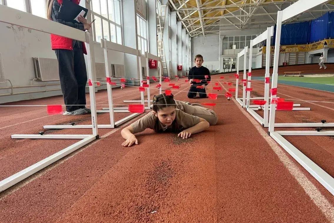 младшая группа (8–10 лет): челночный бег с гранатами, полоса препятствий, тоннель, метание мяча, сборка аптечки, ориентирование, дартс;