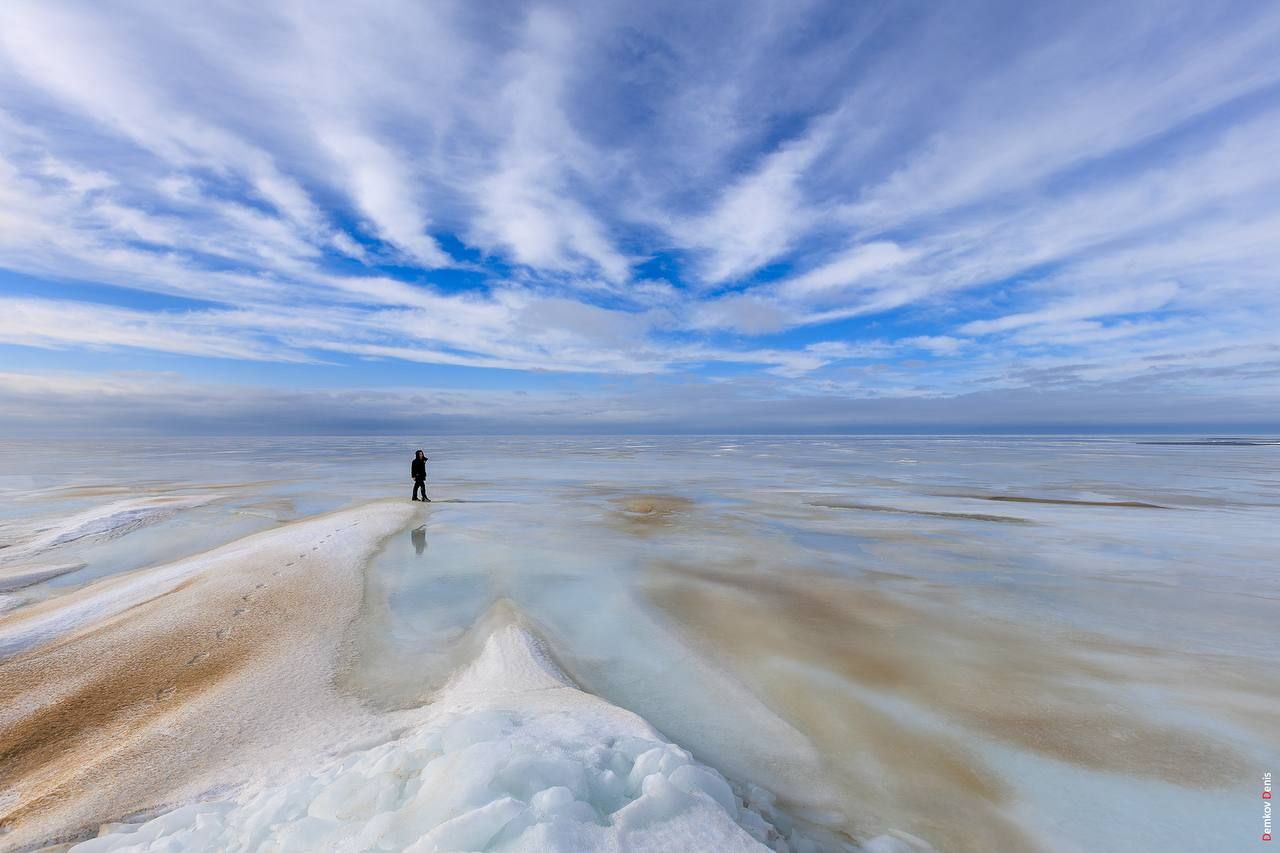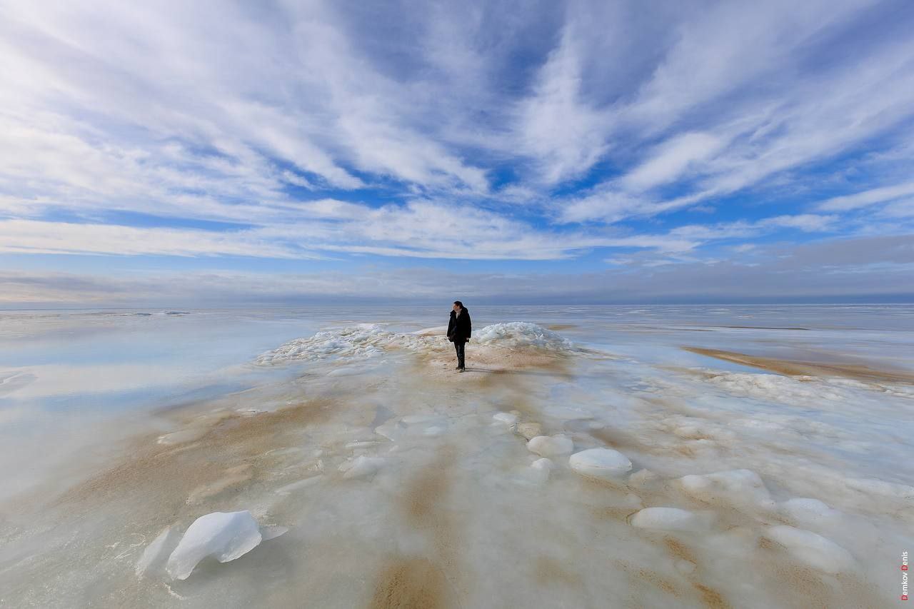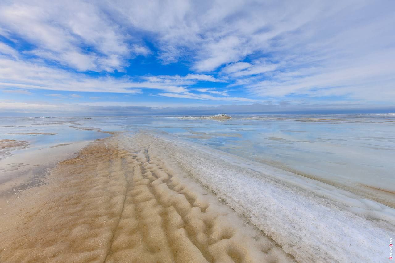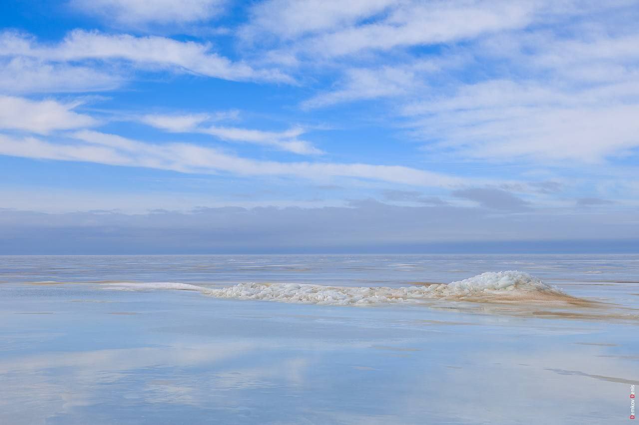 Море замёрзло вместе с песком, получились вот такие реально нереальные пейзажи, которые попали в объектив фотографа Дениса Демкова.