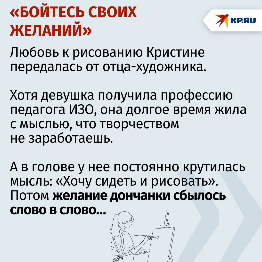 Но зато девушка смогла вернуться к своему давнему увлечению — рисованию. Сейчас у нее трое сыновей, учеба в магистратуре и своя творческая студия, где она и директор, и педагог.