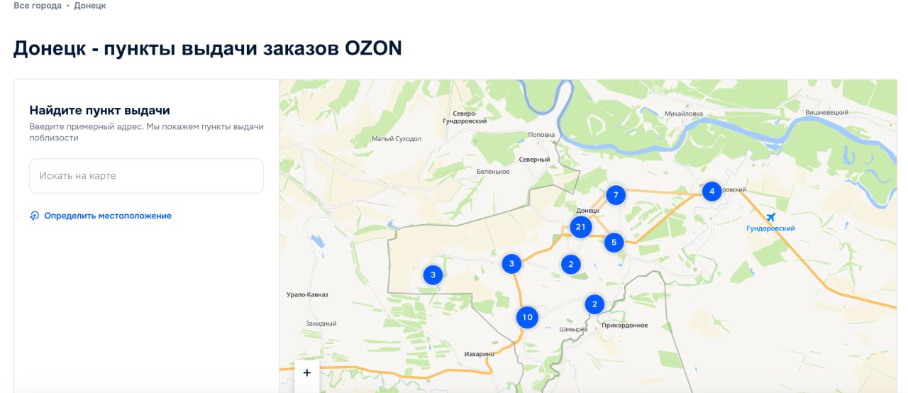"Их там нет" (с)Вы бы расслабились, граждане, с этим пунктом "Озона" в ДНР, город Авдеевка. Нет никаких пунктов выдачи известных маркетплейсов в наших новых Республиках. Если указан Донецк - это ростовский Донецк, мне туда жена сапоги пенопропиленовые заказывала. Сейчас смешно, тогда - нет. Купил в донецком Донецке в три цены.