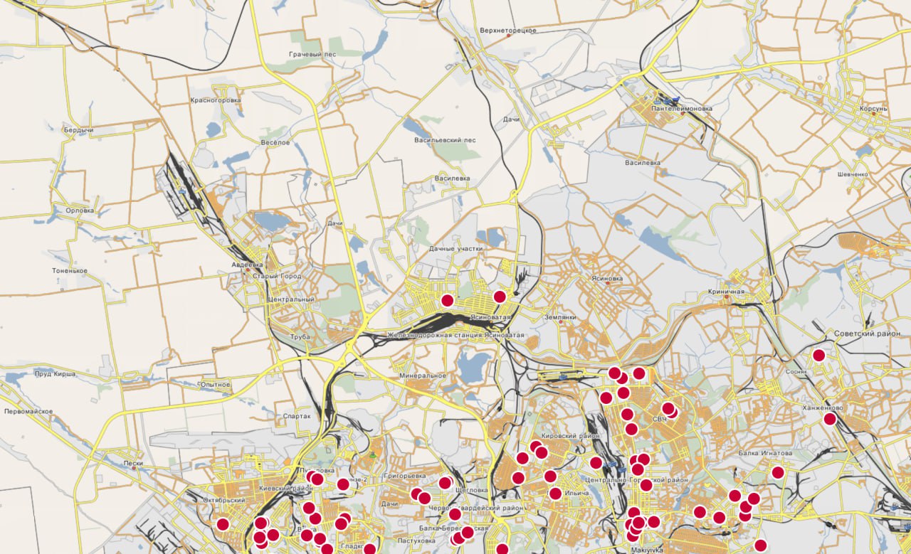Кстати, на карте ПВЗ-прокладок, пока нет Авдеевки. Ясиноватая есть, Авдеевки нет.