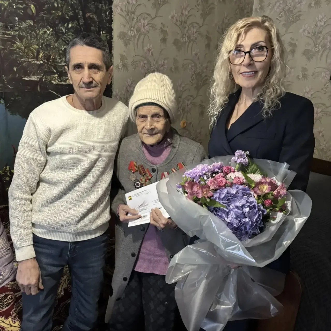 С 99-летием именинницу поздравили заместитель главы администрации города Шахты Светлана Морозова, директор Департамента труда и социального развития Анна Месропян, председатель Шахтинского Совета ветеранов Александр Пятаков, волонтер благотворительного фонда «Солнце в ладошках» Елена Сузинь, директор ЦСО N1 Наталья Лотарева.