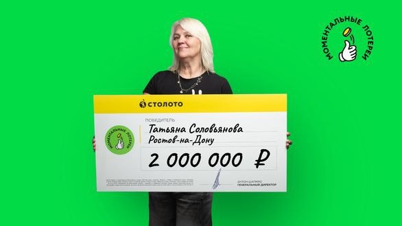 Татьяна Соловьянова из Ростова-на-Дону выиграла 2 миллиона рублей благодаря моментальной лотереи. Женщина получила такой счастливый билет в подарок от своей мамы.