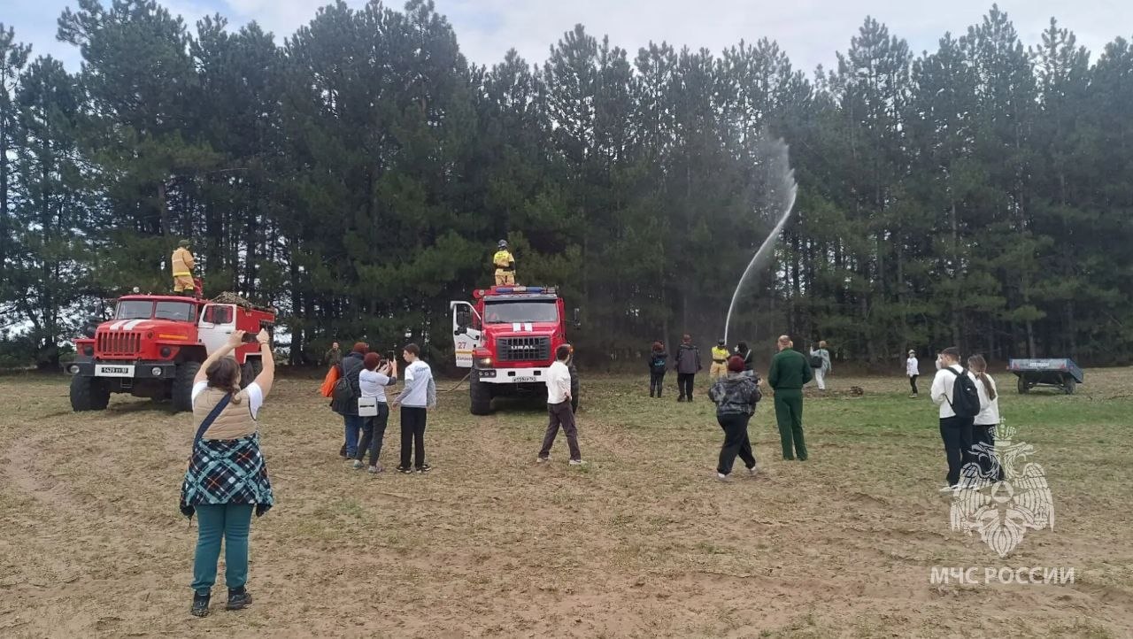 А после пожарные дали исследовать свою технику и продемонстрировали, как водяными пушками тушат лесные пожары.