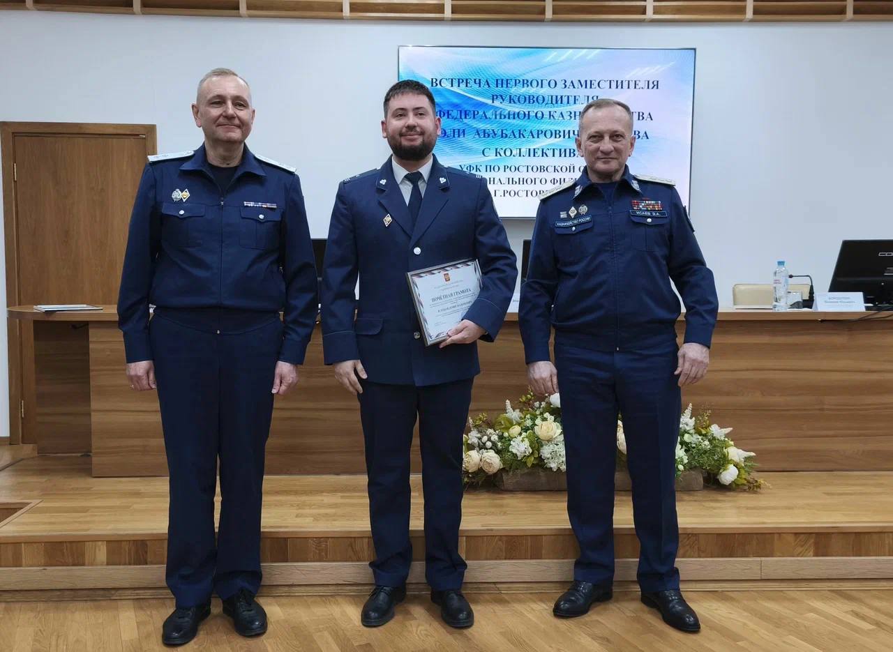 С участием руководителя УФК по Ростовской области Валерия Бородулина проведена церемония награждения сотрудников Управления и филиала ФКУ «ЦОКР», проявивших особо ответственный подход к профессиональному делу, продуктивность в работе.