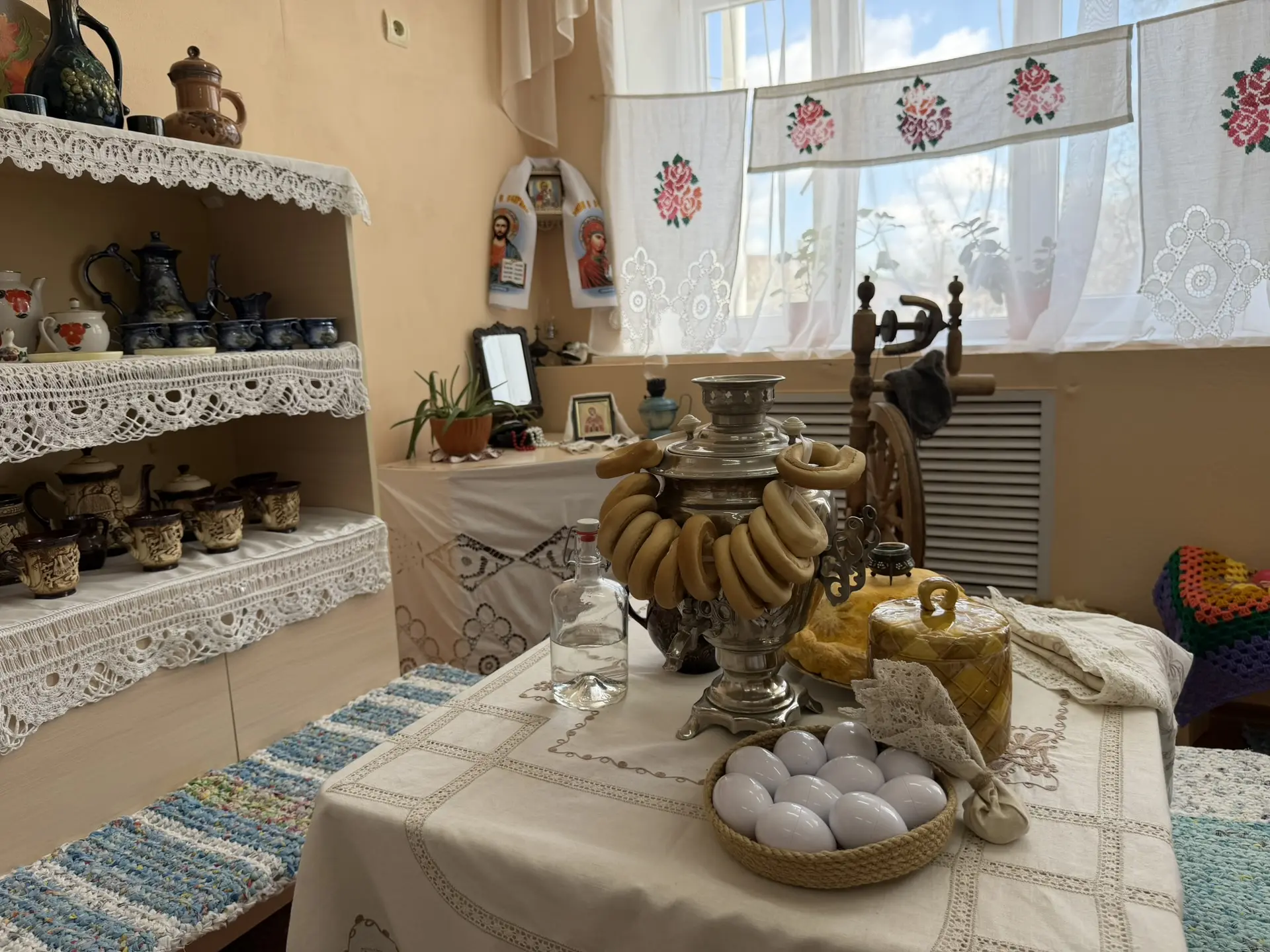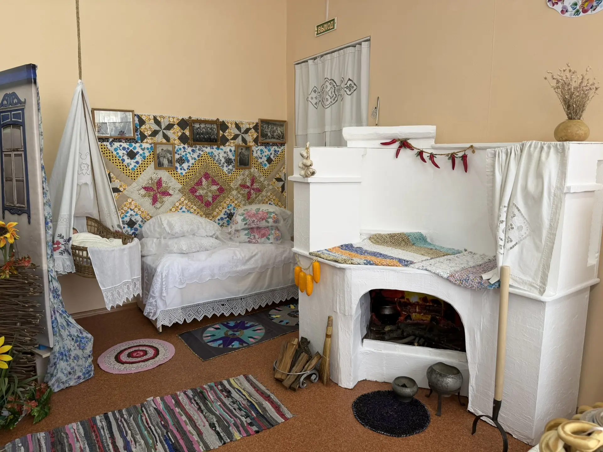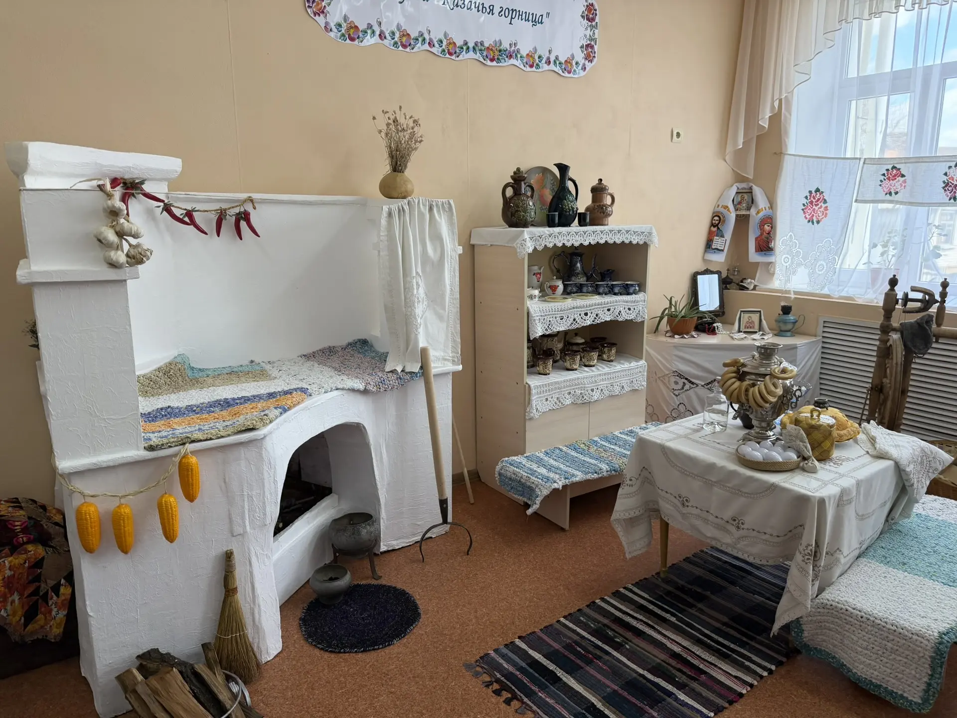 Экспозиция включает инсталляцию казачьего куреня, выставочные экспонаты народного казачьего быта, среди которых — печка, фотографии и предметы старины.