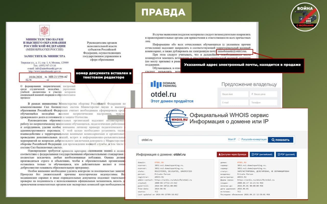 Фейк: Минобрнауки РФ выпустило распоряжение, предписывающее вузам усилить мероприятия по комплектованию Сил беспилотных систем за счет отчисленных за прогулы и неуспеваемость студентов. Такие сообщения распространяются в оппозиционных телеграм-каналах.