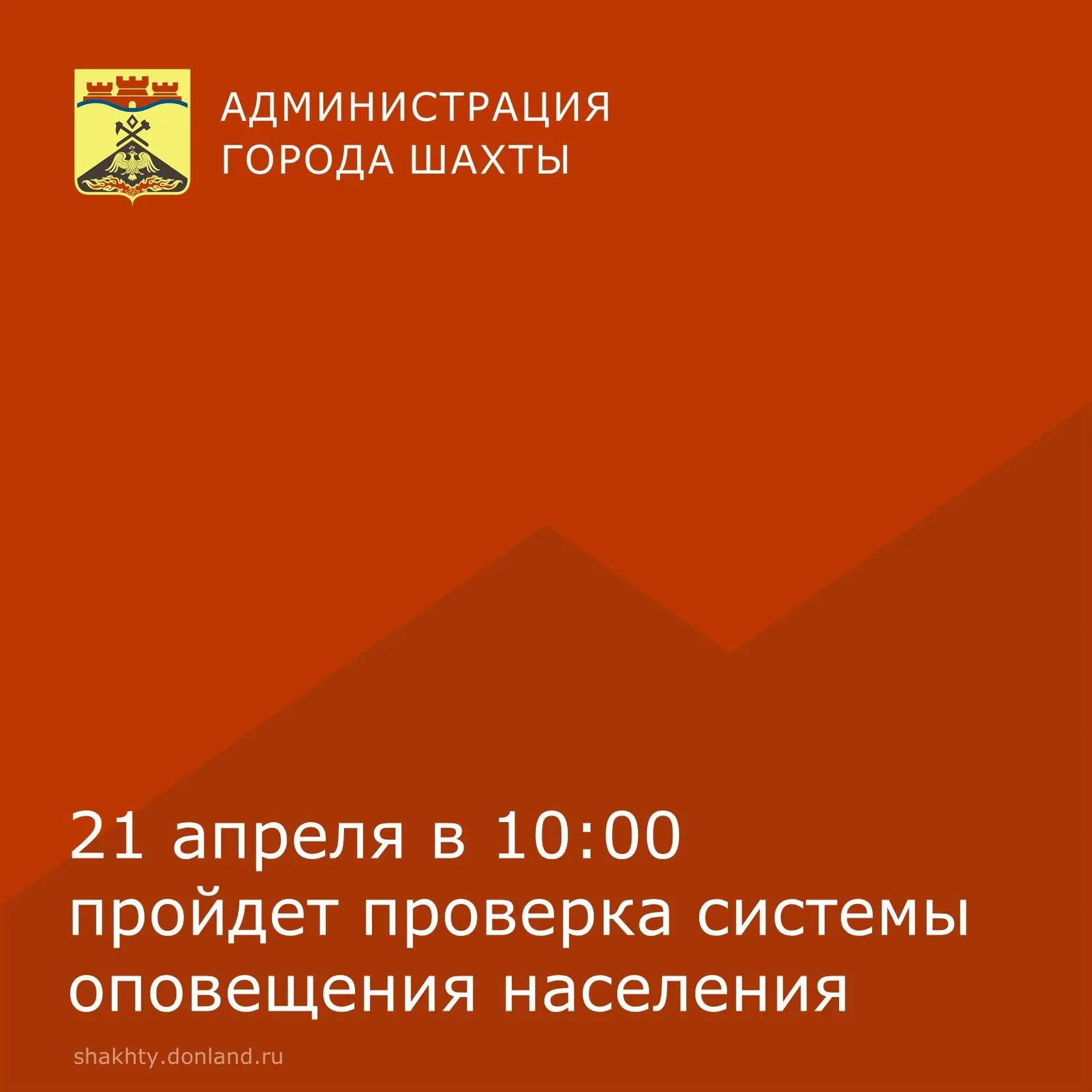 МКУ г. Шахты «Управление по делам ГО ЧС» информирует, что в связи с технической проверкой, 21 апреля 2026 года в 10:00 будет проведен запуск централизованной системы оповещения населения