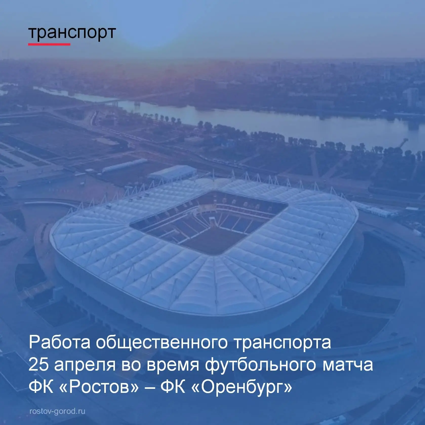 Работы пассажирского транспорта во время проведения футбольного матча на стадионе «Ростов-Арена» среди команд ФК «Ростов» - ФК «Оренбург», который состоится 25 апреля 2026 года. Начало игры в 14:30.