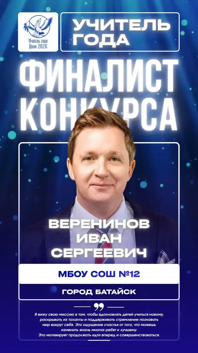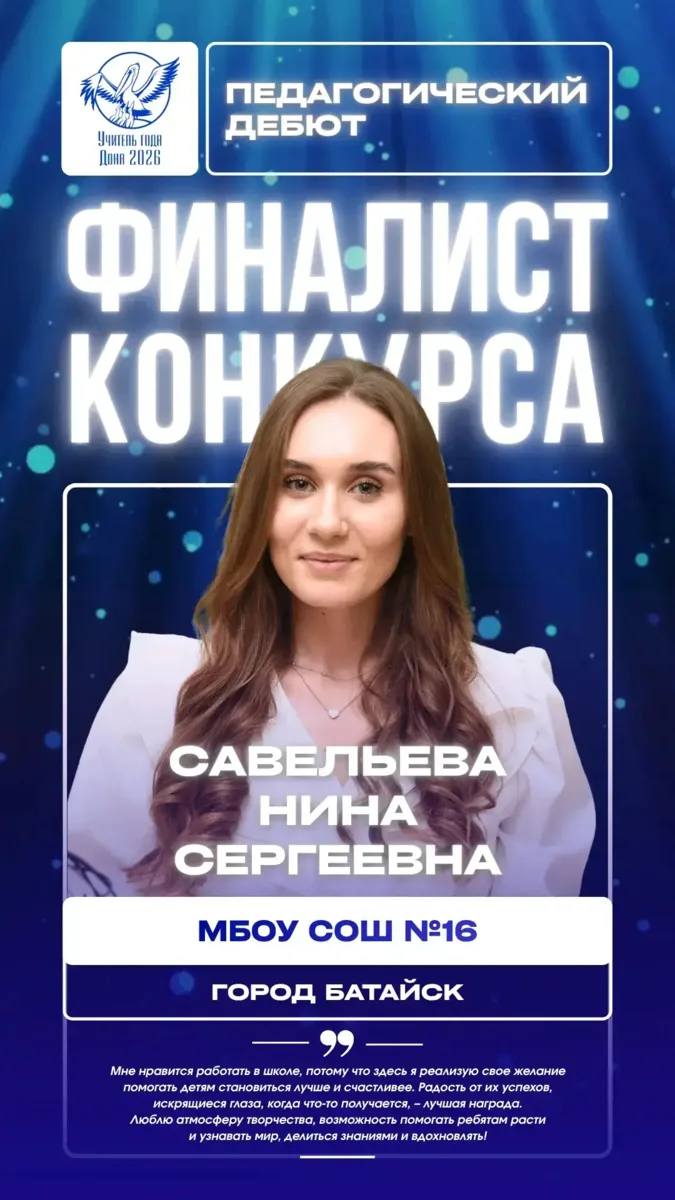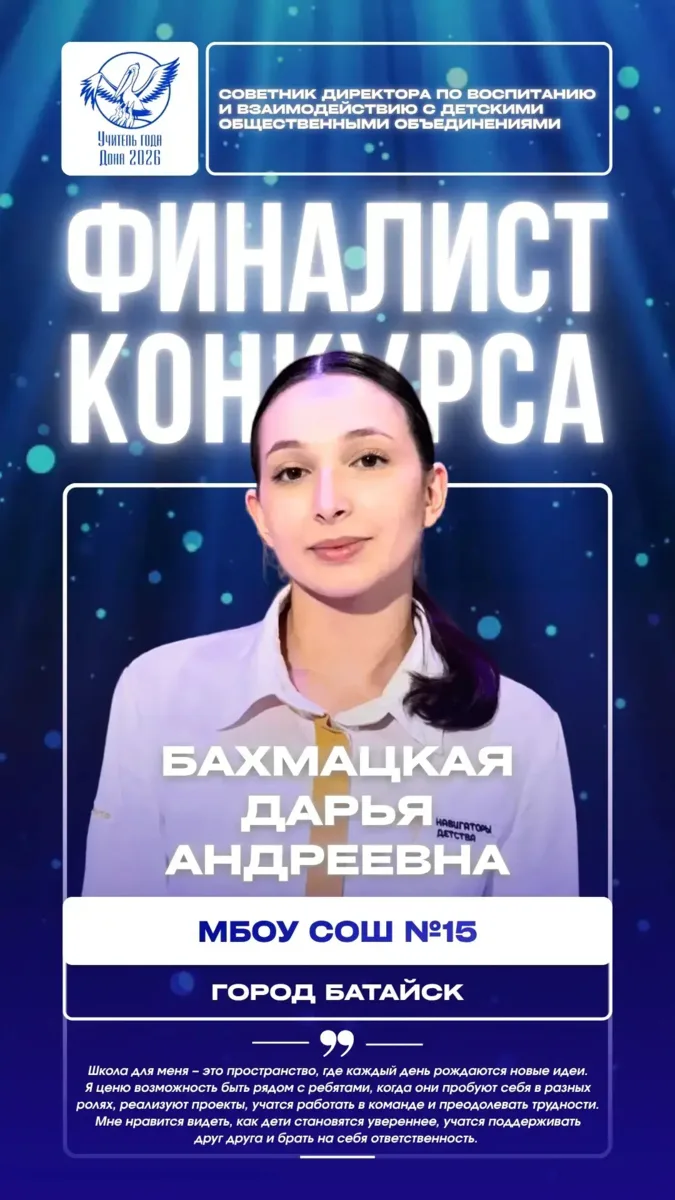 Батайские учителя достойно представили город и стали финалистами конкурса. Это серьёзный результат: участники проходили профессиональные испытания, работали перед экспертным жюри и показывали свои методики, подходы и педагогическое мастерство.