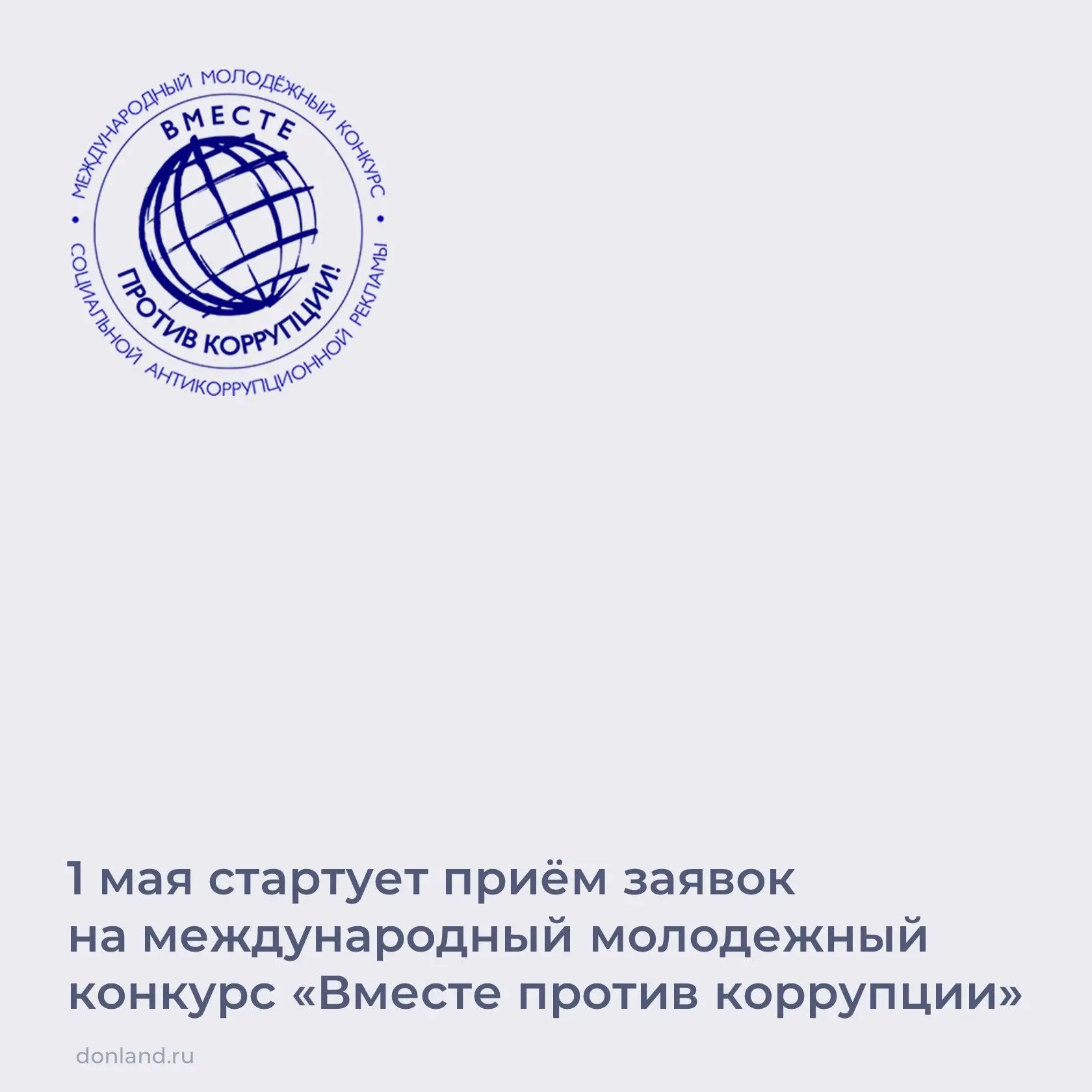 С 1 мая по 1 октября объявлен прием заявок на участие международном молодежном конкурсе социальной антикоррупционной рекламы «Вместе против коррупции!»