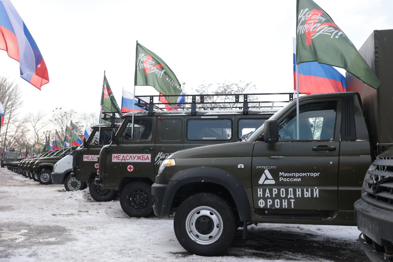 «В очередной раз на гостеприимной ростовской земле мы передаем технику нашим бойцам. Здесь находится 125 автомобилей высокой проходимости, такие как "Нива" и УАЗ в различной модификации. Есть также скорые помощи, багги, несколько грузовиков КамАЗ и звезда автомобильного созвездия УАЗ "буханка" с противоосколочными одеялами. Автомобили с такой защитой особенно эффективны при эвакуации раненых. Отдельно хочу сказать огромные слова благодарности за эту непрекращающуюся поддержку со стороны Правительства Российской Федерации», – рассказал руководитель исполкома Народного фронта Михаил Кузнецов.