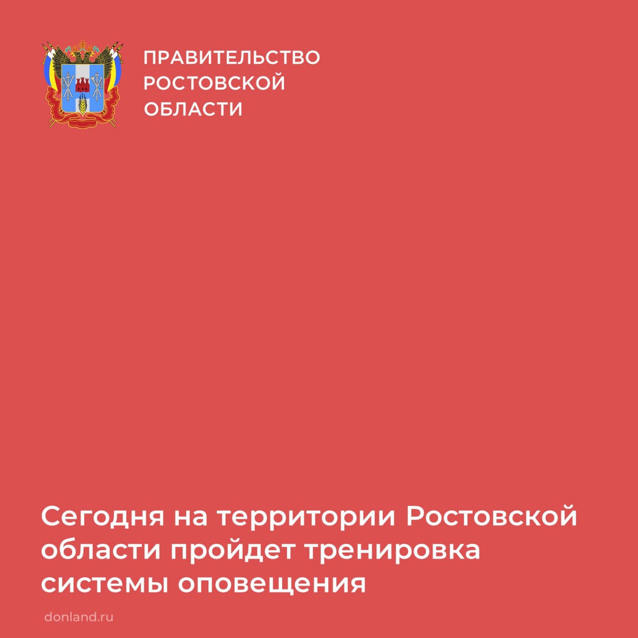 Сегодня с 10:30 до 11:00 на территории всех 55 муниципальных образований Ростовской области пройдет тренировка системы оповещения и информирования населения региона с задействованием всех имеющихся технических средств оповещения (электросирен, уличных громкоговорителей, трансляционных установок).