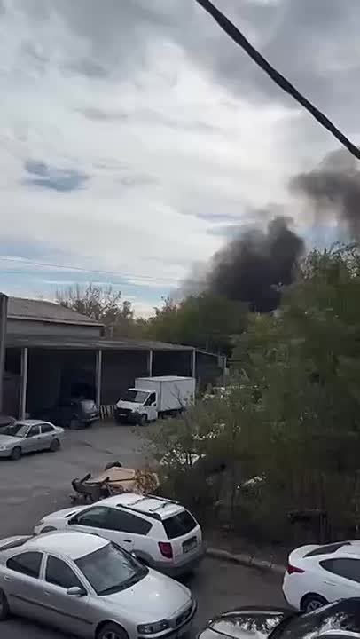 Пожар на Монтажной, рядом с Вавилова. Столб дыма видно издалека