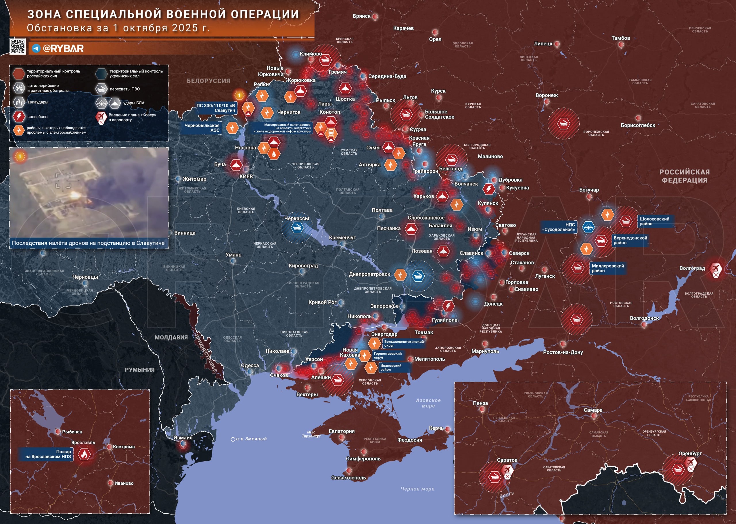 Российские войска вновь нанесли удары по энергообъектам, вызвав масштабные отключения электроэнергии в нескольких регионах т.н. Украины. Также, по данным Даниила Безсонова (@NeoficialniyBeZsonoV), атаке подверглось место проведения мероприятия ВСУ в Балаклее.
