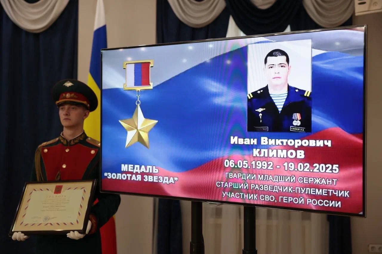 Сегодня передал вдове гвардии младшего сержанта Ивана Викторовича Климова высшую государственную награду — медаль «Золотая Звезда» Героя Российской Федерации.