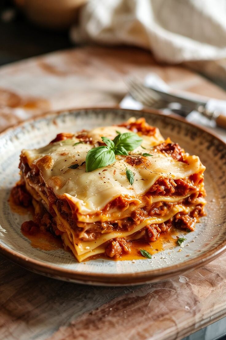 После сборки разогреть духовку до 180°C. Накрыть форму фольгой и готовить 20 минут, затем снять фольгу и подрумянить еще 10 минут. Дайте лазанье немного остыть перед подачей – это упростит нарезку. Отличным дополнением к блюду станет зеленый салат и хрустящий хлеб.