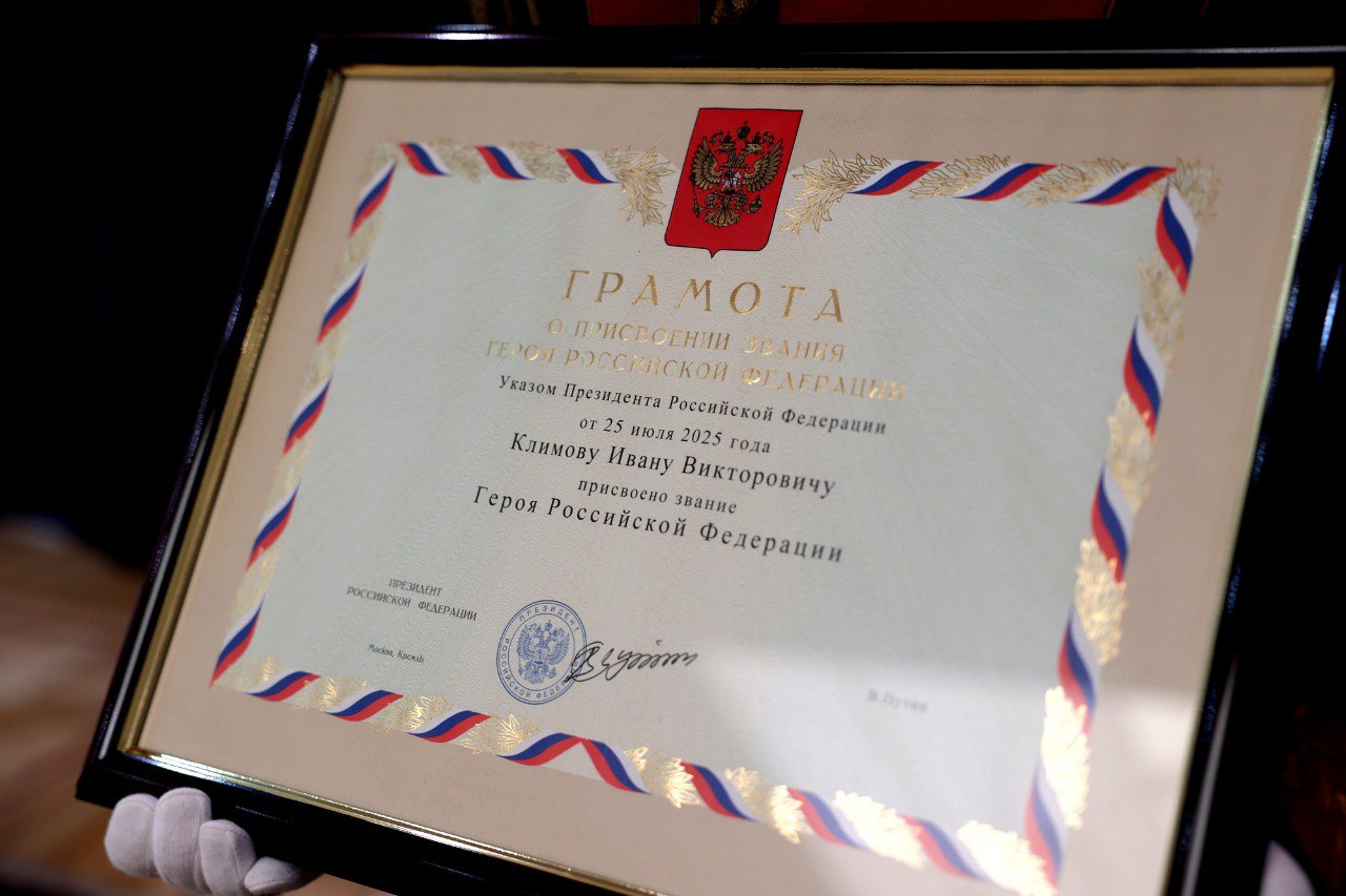 Высшей награды младший сержант удостоен посмертно за мужество, проявленное на передовой. Он погиб, закрыв товарищей своим телом от осколков разорвавшегося снаряда. У Ивана Климова осталось двое маленьких детей.