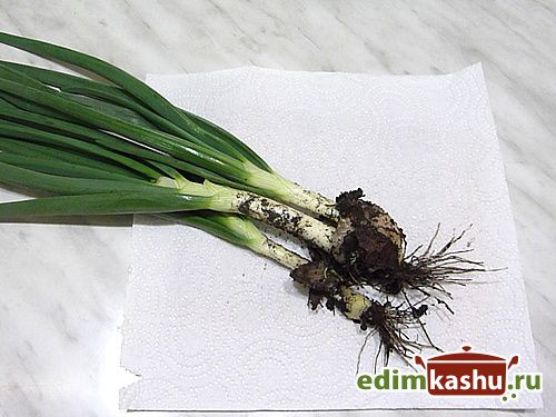 Начинается все с чистки. Чтобы зеленый лук выглядел аккуратно и аппетитно, сначала необходимо удалить луковицу. Рекомендовано обрезать корешок на 1-1,5 см от края, а также убрать верхние, загрязненные листья. Это важно, ведь так удастся использовать только самые свежие и зеленые перья, которые будут приносить максимум вкуса.