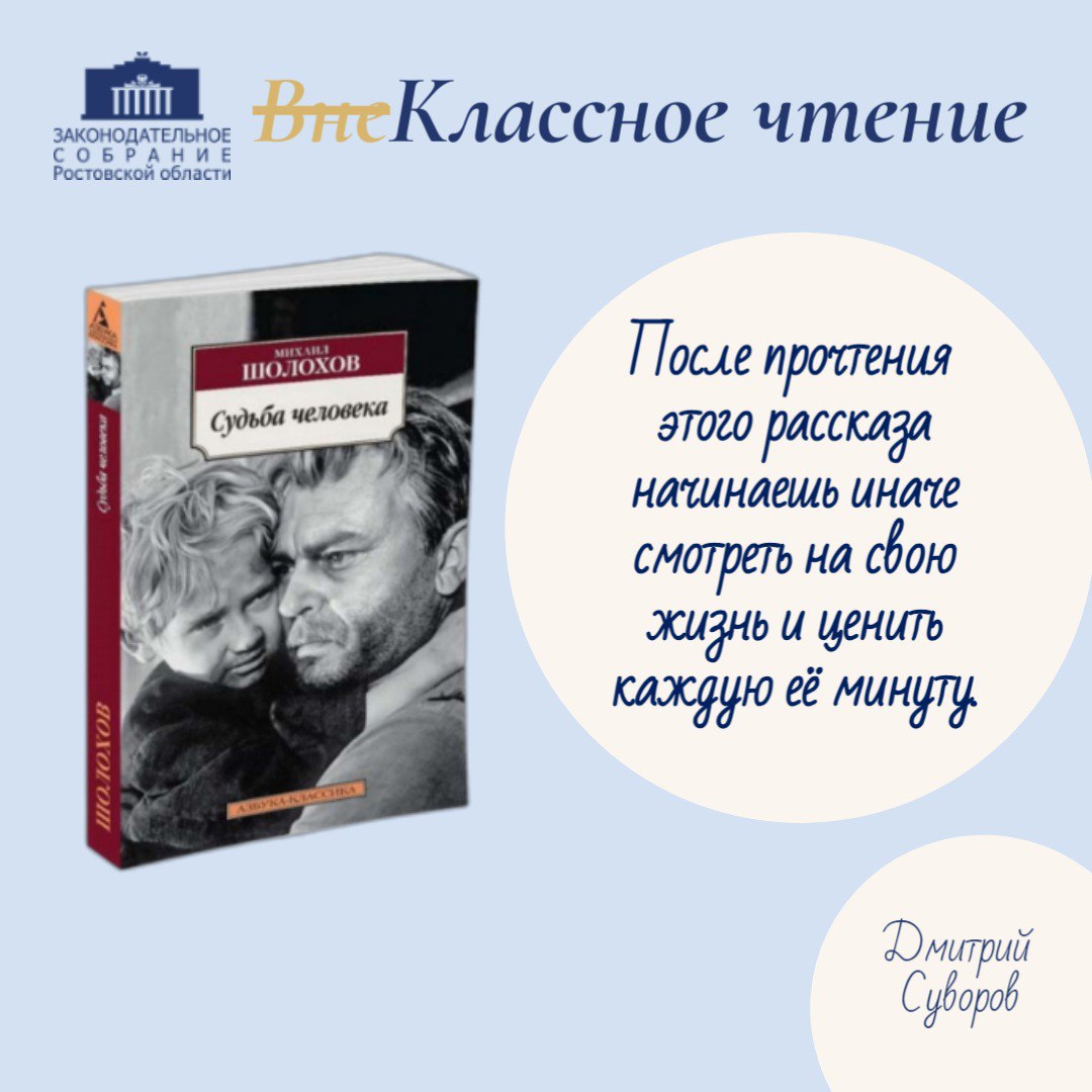 Когда думаю о человеческой стойкости и силе духа, вспоминаю рассказ Михаила Шолохова «Судьба человека». Михаил Шолохов наш земляк, выросший на донской земле, и, как никто другой, умел писать о людях простых, но великих своей внутренней силой.История Андрея Соколова — это не просто рассказ о войне. Это правда о том, что даже когда у человека отнято всё — семья, дом, надежда — он всё равно может подняться и продолжить жить. Не ради себя, а ради будущего, ради того, чтобы не прервалась жизнь.