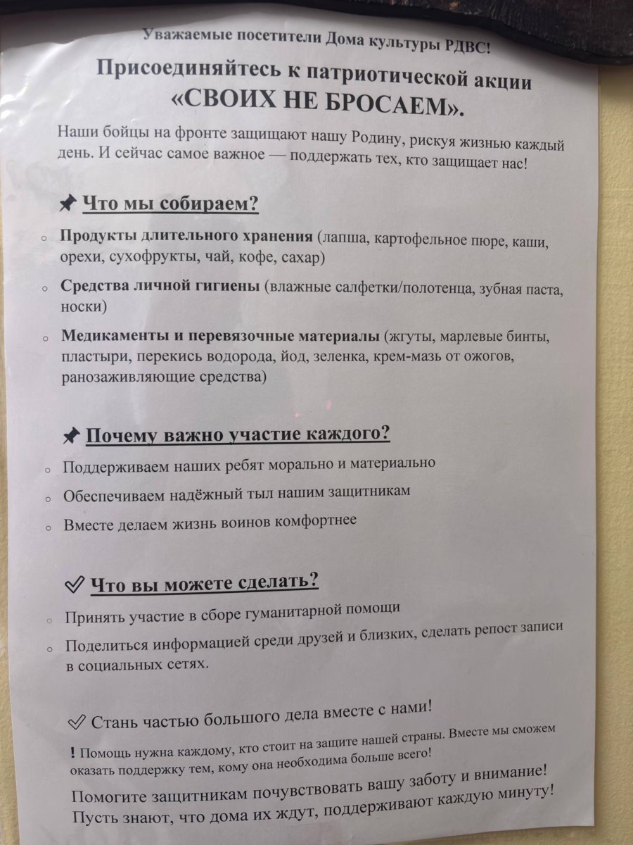 ДК РДВС проводит акцию «Своих не бросаем!»