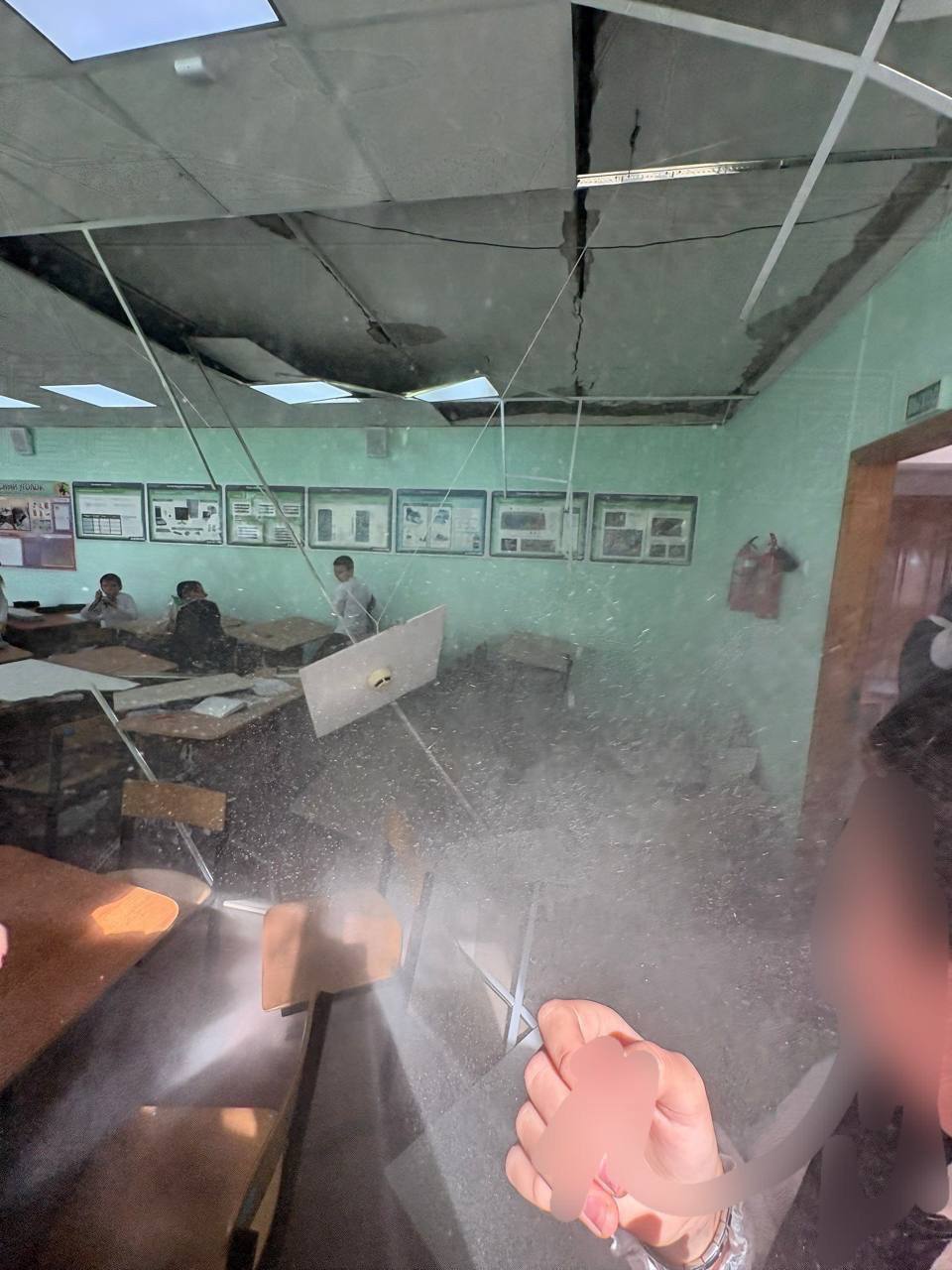 Никто из детей не пострадал. Последний капремонт тут был аж в 2006-м, снаружи здание выглядит не лучше — по фасаду тянется большая трещина.