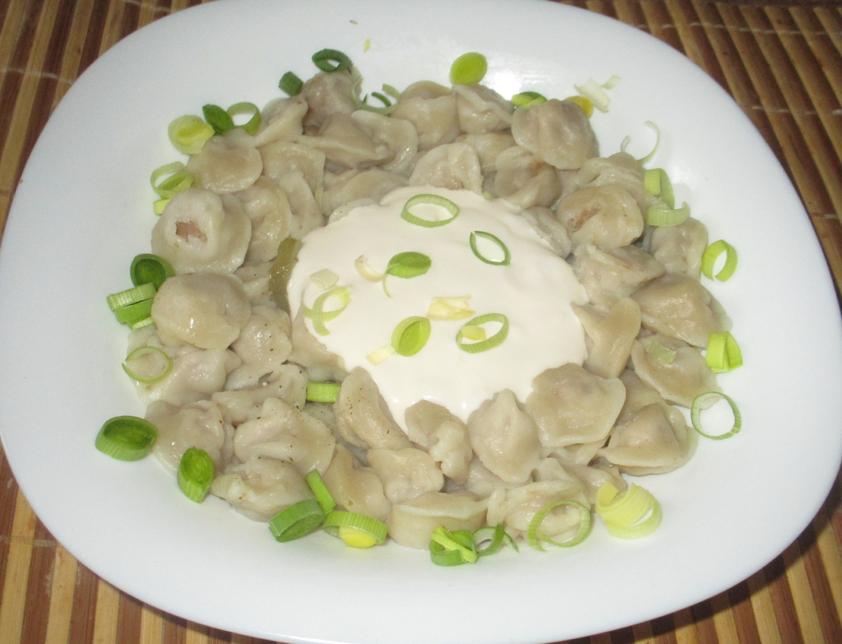Тесто раскатывается в тонкий пласт, из которого вырезаются мини-кружочки — в роли формочки может выступать обычная крышка. На каждый кружочек помещается небольшое количество начинки, после чего краешки теста соединяются, формируя мини-пельмени.