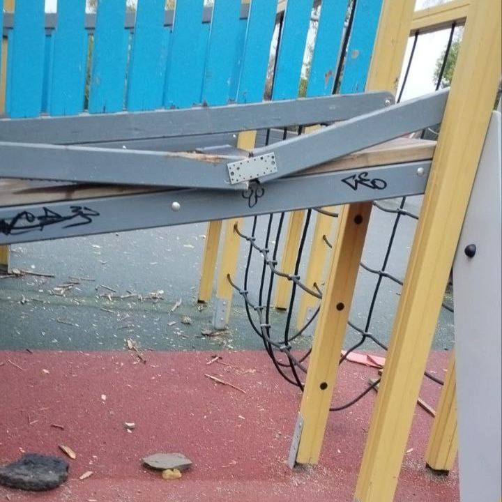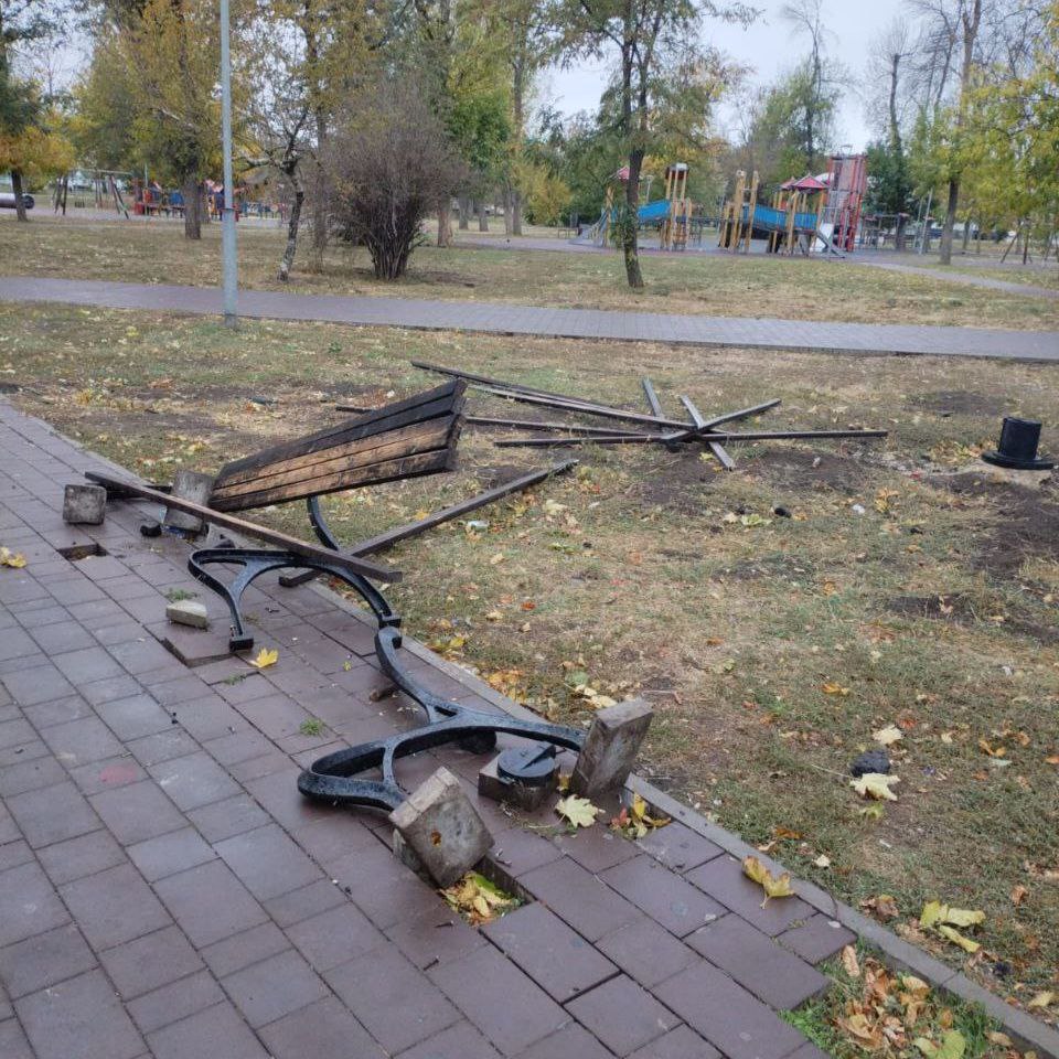 Территория Александровского парка подверглась действиям хулиганов. Результаты вандализма пугают масштабами: сломаны несколько лавочек, игровых элементов на детской площадке – качели, лесенки, разрушено основание памятника и малые архитектурные формы в части парка около спорткомплекса «Прага».