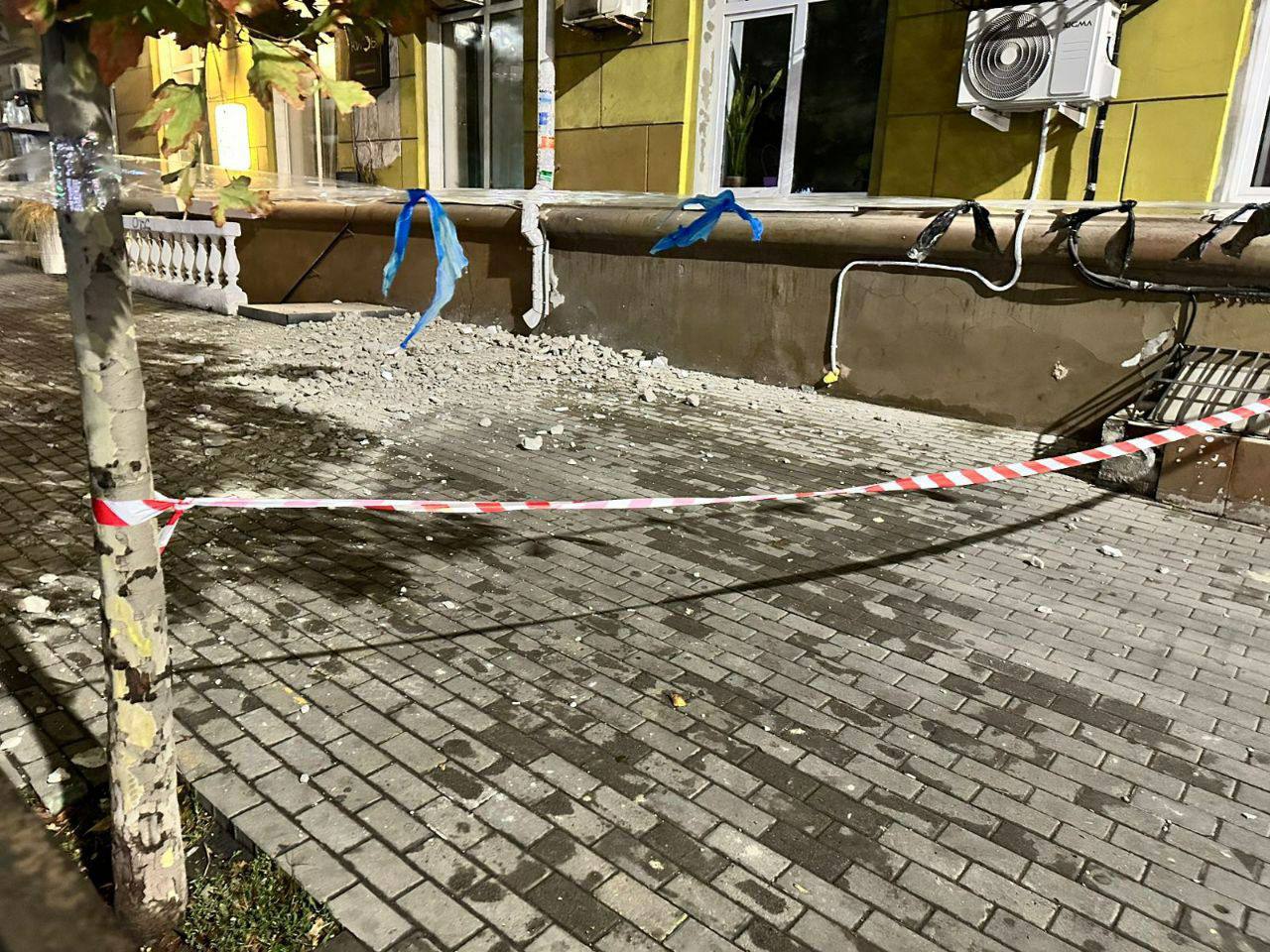 Кусок фасада обрушился в центре Ростова, на Ворошиловском, 34 прошлой ночью. Об этим пишут коллеги из «Тютины»