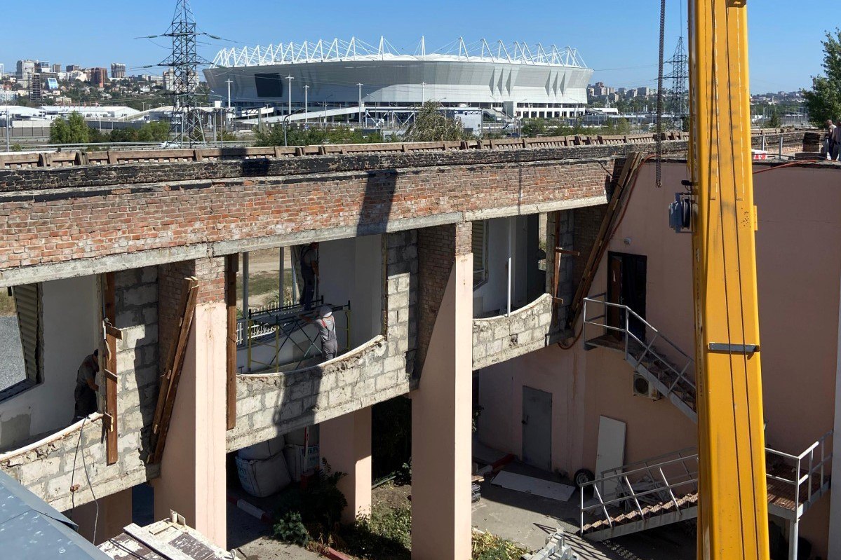 В блоке № 2 уже завершены внутренние демонтажные работы. Подрядчик приступил к демонтажу фасада и установке окон.