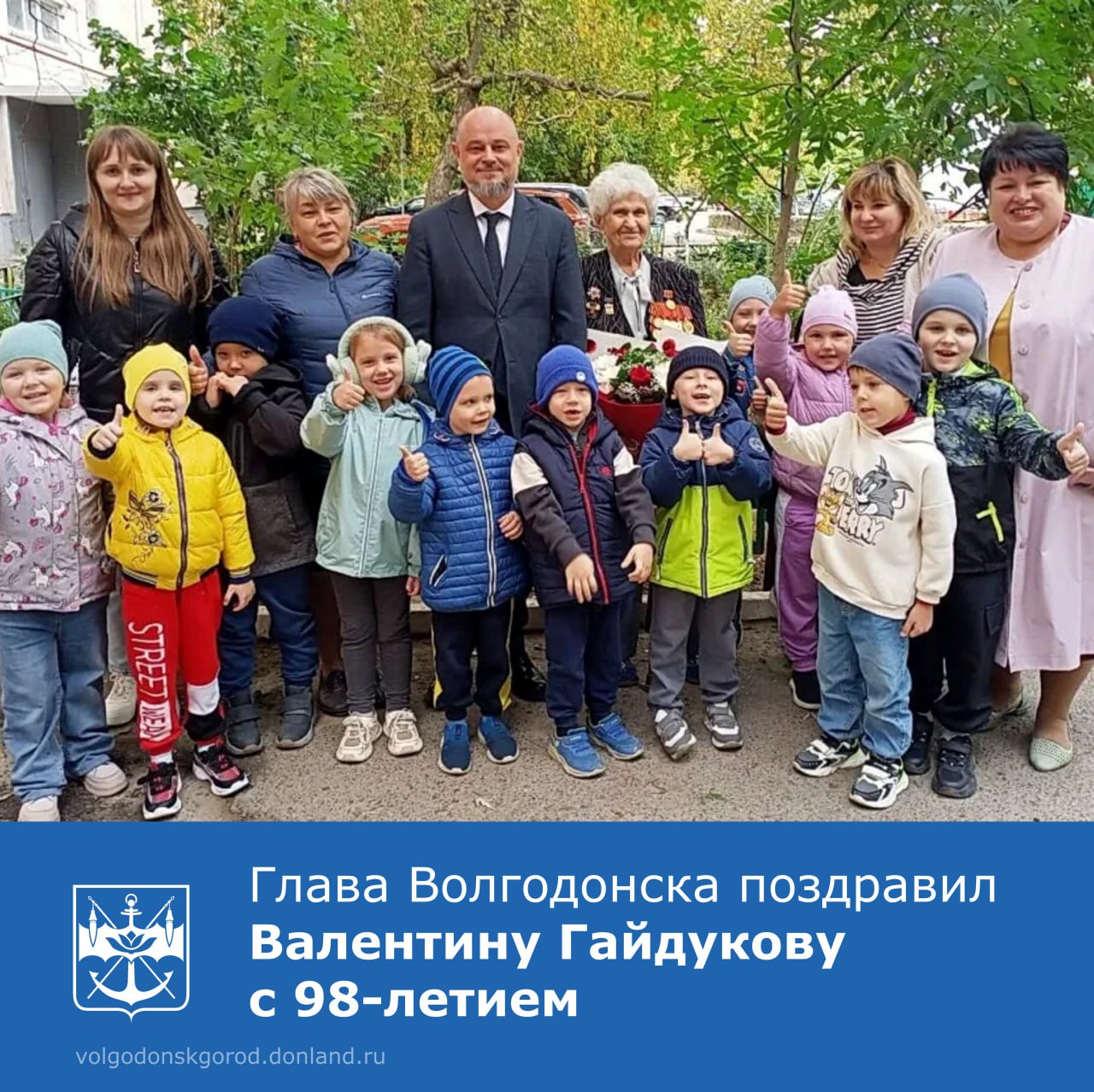 6 октября свой 98-й день рождения отметила Валентина Вениаминовна Гайдукова – участник Великой Отечественной войны и Почетный гражданин города. С праздником ее лично поздравил Глава Волгодонска Дмитрий Вельможко.