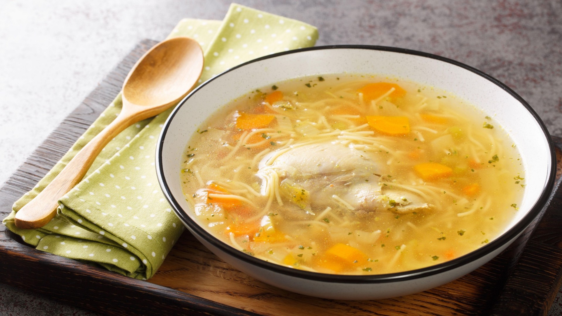 На первый взгляд, это обычный куриный суп с вермишелью. Но благодаря одному дополнительному ингредиенту он превращается в оригинальное и питательное блюдо для всей семьи. Попробуйте, тем более что приготовить его не составит труда.