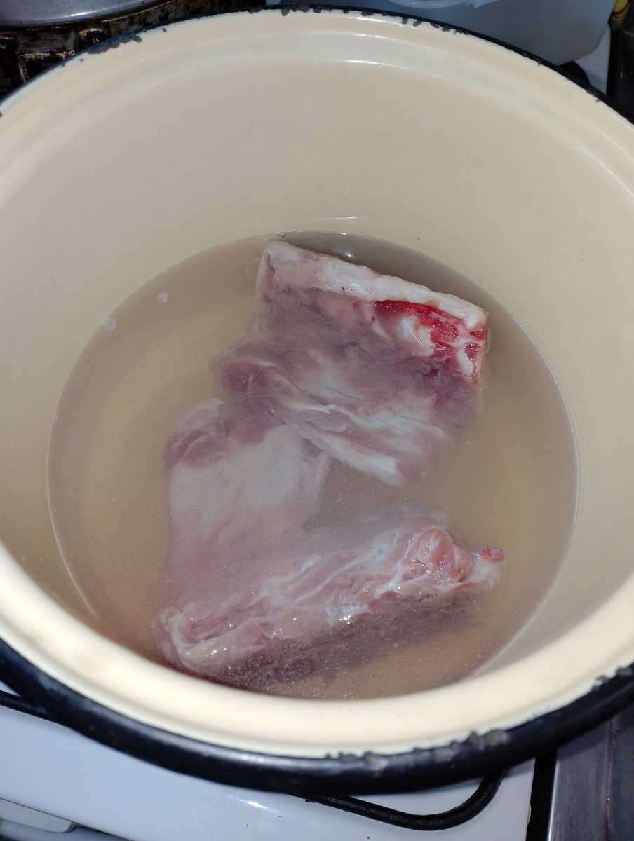 - Мясной бульон: Отварите любые мясные кусочки, которые найдутся в холодильнике, включая косточки с небольшим количеством мяса. Важно, чтобы бульон был наваристым.